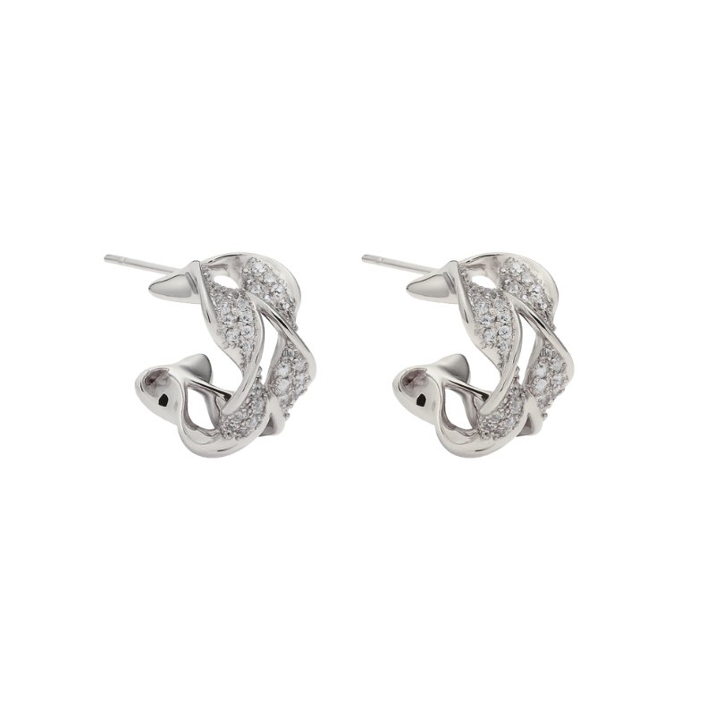 Argola prata torcida com detalhes cravejados.