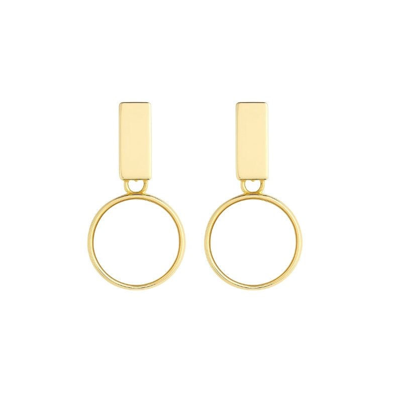 Brinco dourado circular com madrepérola.