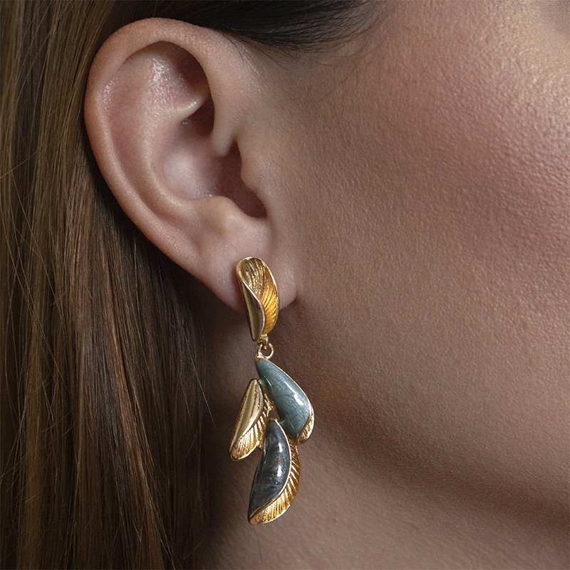 Brinco dourado com acabamento esmaltado em dois tons de azul, perfeito para adicionar charme e sofisticação ao look.