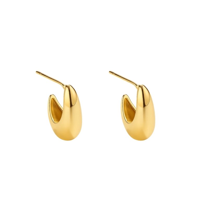 Brinco dourado gota orgânica liso.