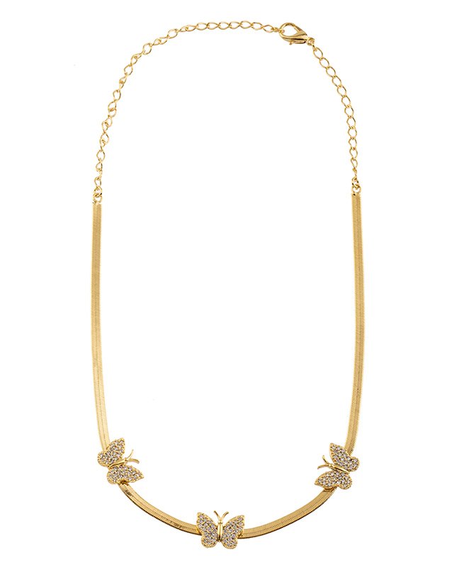 Beleza e leveza que encantam! A choker dourada com malha de fita entrelaçada e delicadas borboletas cravejadas em zircônias é a escolha perfeita para um visual feminino e sofisticado.