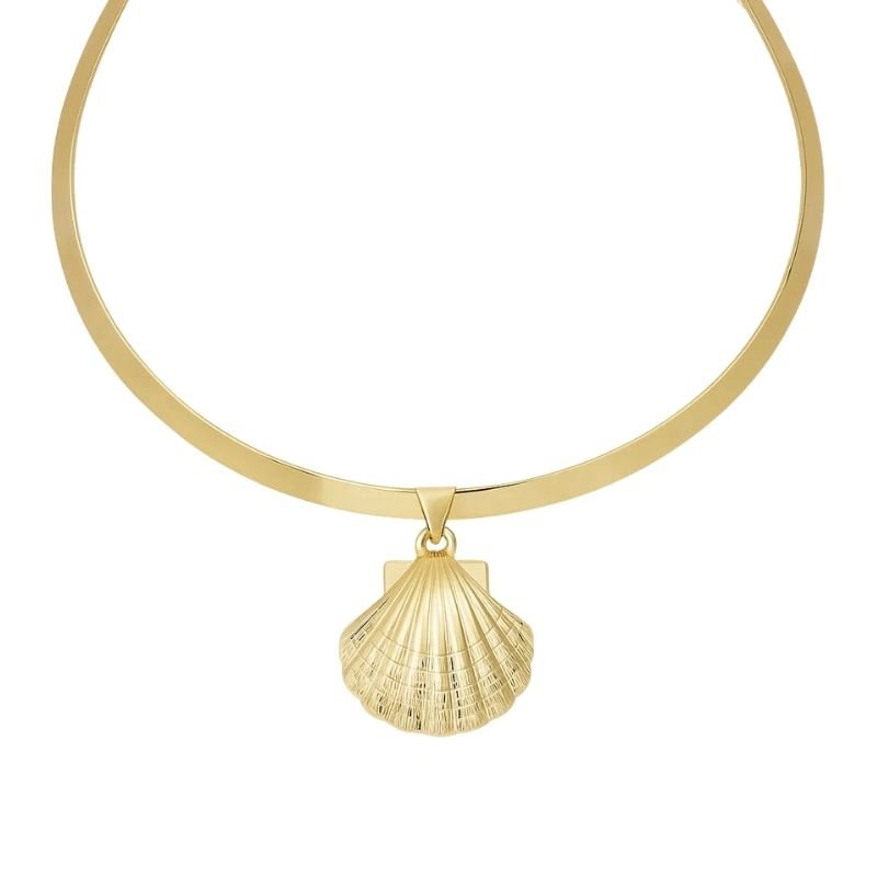 Colar aro largo com pingente de concha.