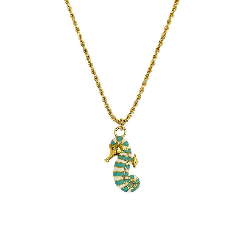 Colar cordão baiano com pingente de cavalo-marinho verde.