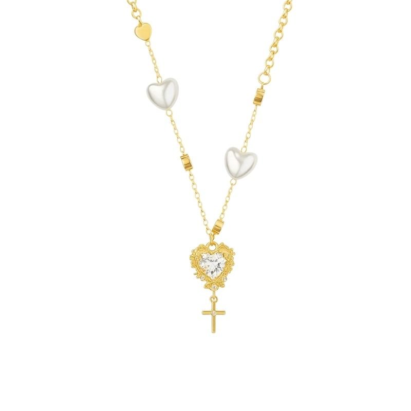 Colar dourado com coração e mini cruz.