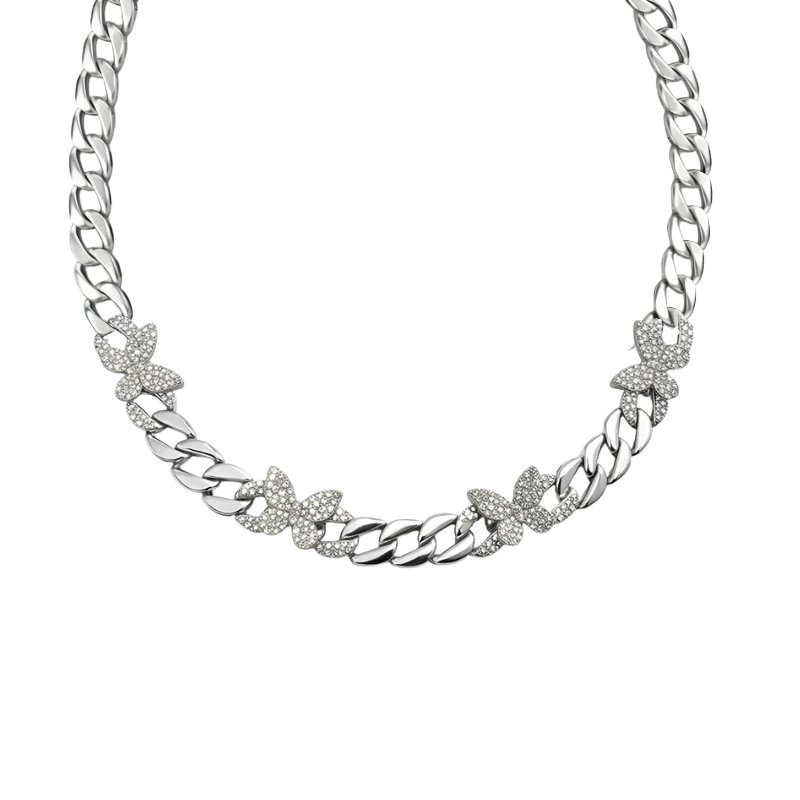 Colar com corrente de elos e borboletas cravejadas.