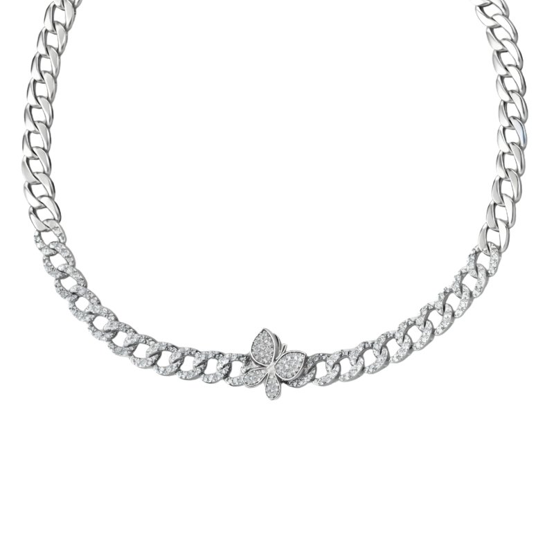 Colar com elos e borboleta cravejada central