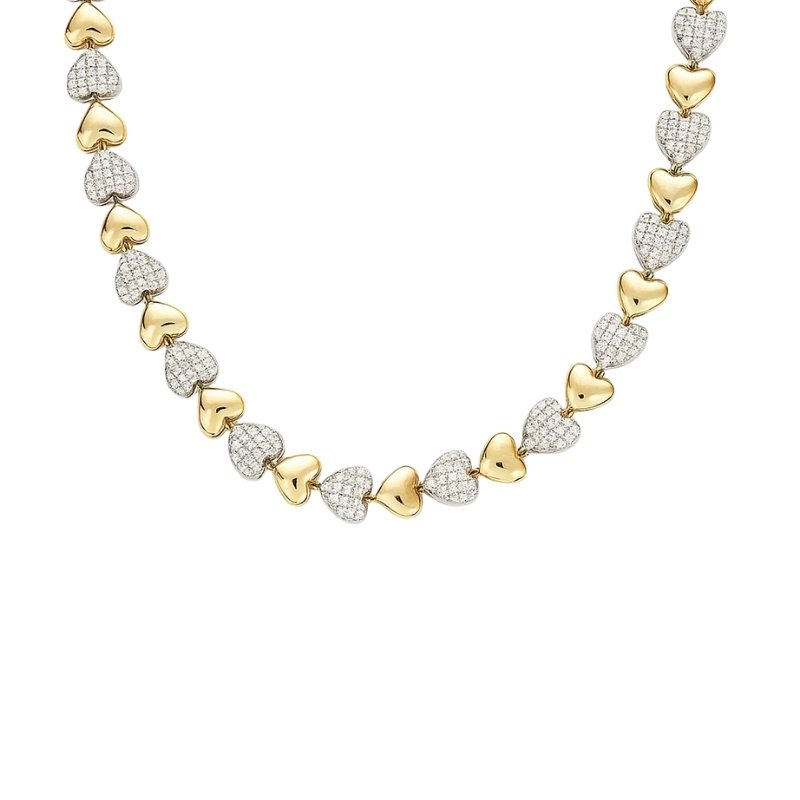 Colar de corações dourados e cravejados, alternando brilho delicado.