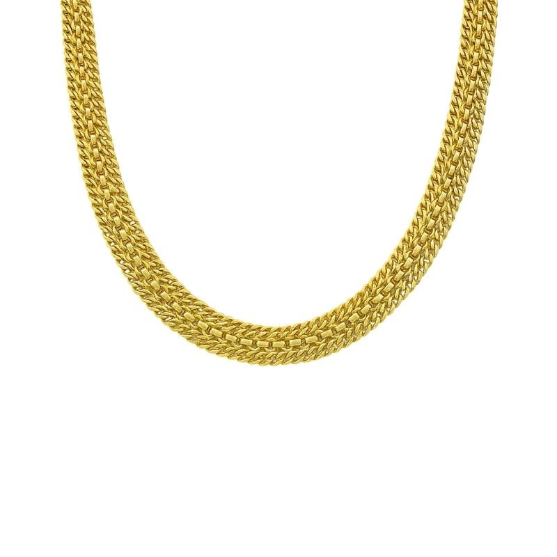 Colar dourado de corrente tripla grossa.