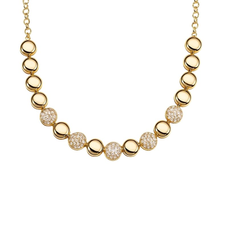 Colar elo português dourado de esferas lisas e cravejadas.