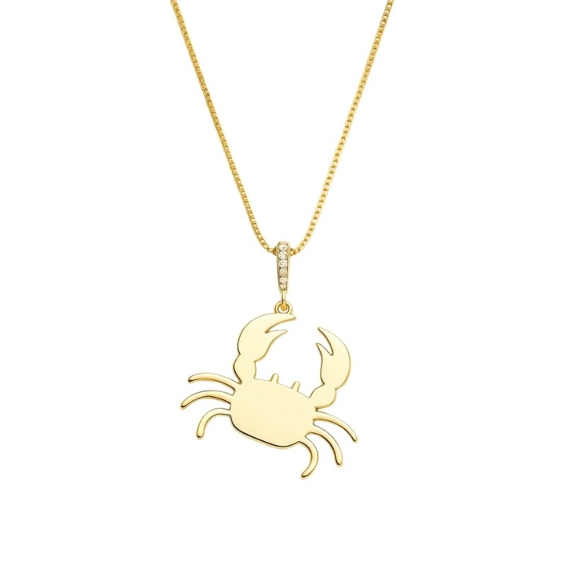 Colar com pingente de caranguejo com detalhe cravejado.