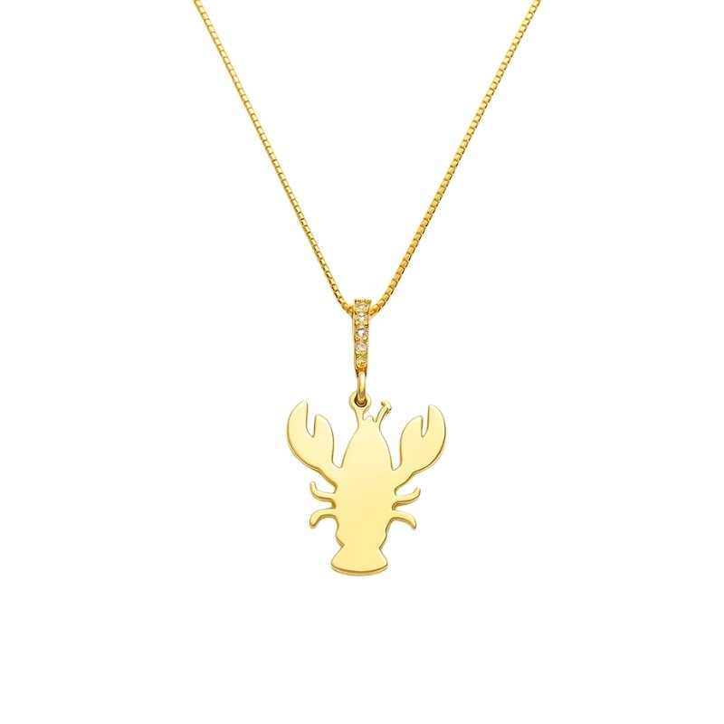Colar com pingente de lagosta com detalhe cravejado.