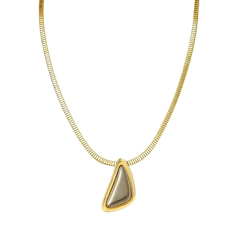 Colar com pingente triangular assimétrico dourado.