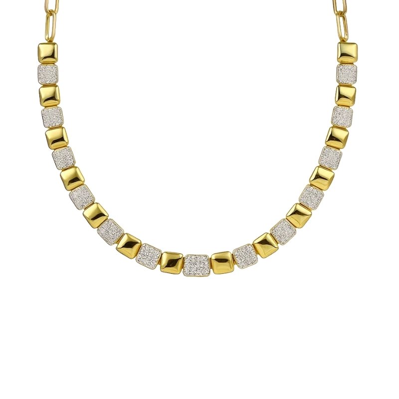 Colar de corrente cartier com quadrados lisos e cravejados.